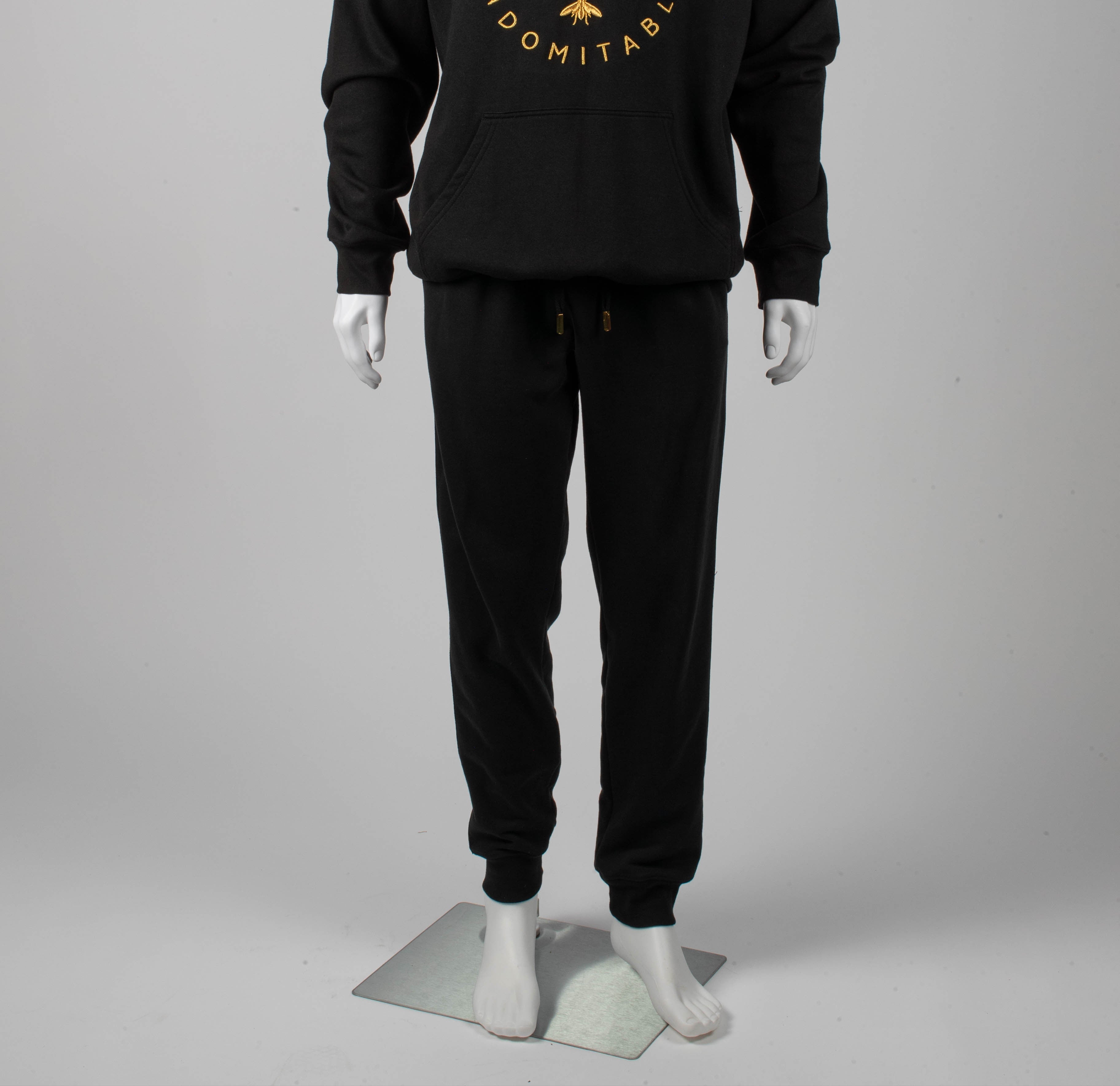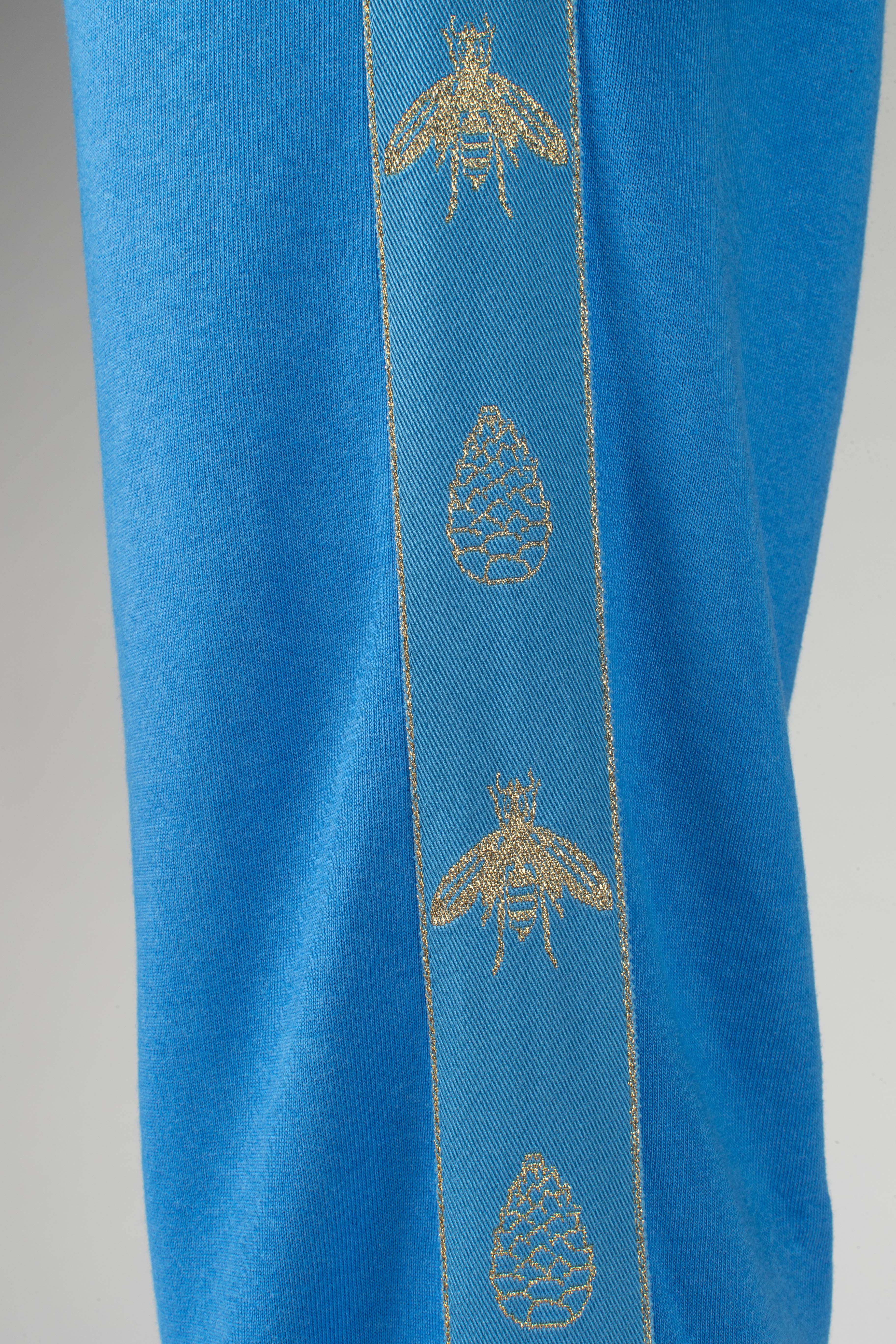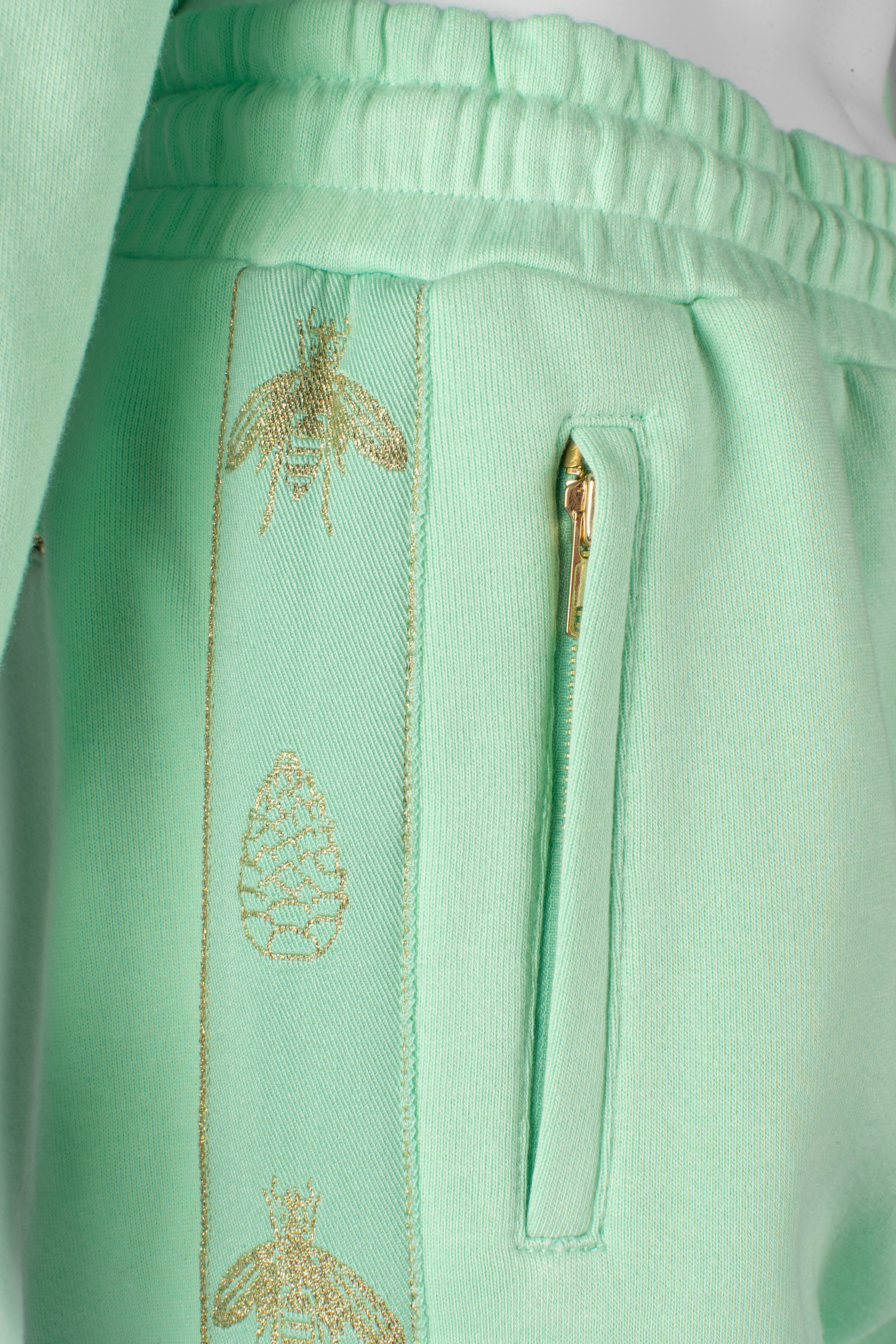 American Made Boot Cut sweat pants made with American Bamboo Cotton blend with luxe jaquard side striping in metallic gold, 4 pocket design, RiRi zippers on all pockets.