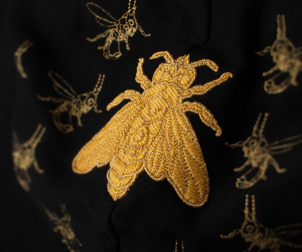 Our metallic gold thread embroidery brings a touch of elegance and luxury, reflecting light beautifully to enhance the fabric’s design with a striking, sophisticated finish.